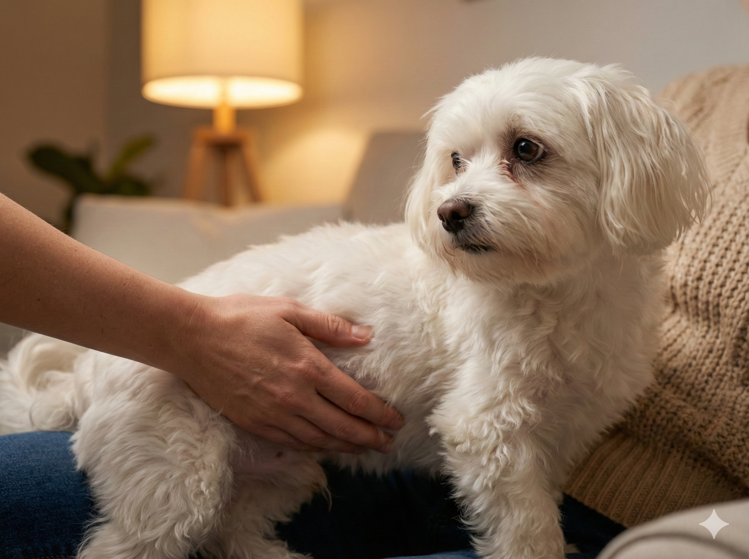 배를 만지려 하면 으르렁거리거나 피하는 반응을 보입니다. - 안절부절못하며 왔다 갔다 하는 행동