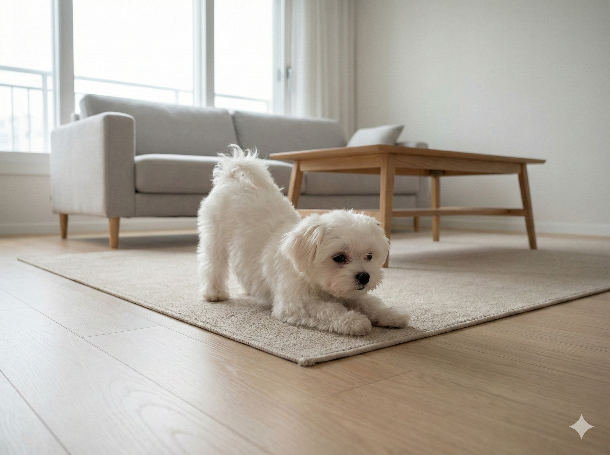 오늘은 보호자가 흔히 기지개로 착각하기 쉬운 강아지 복통 시그널과