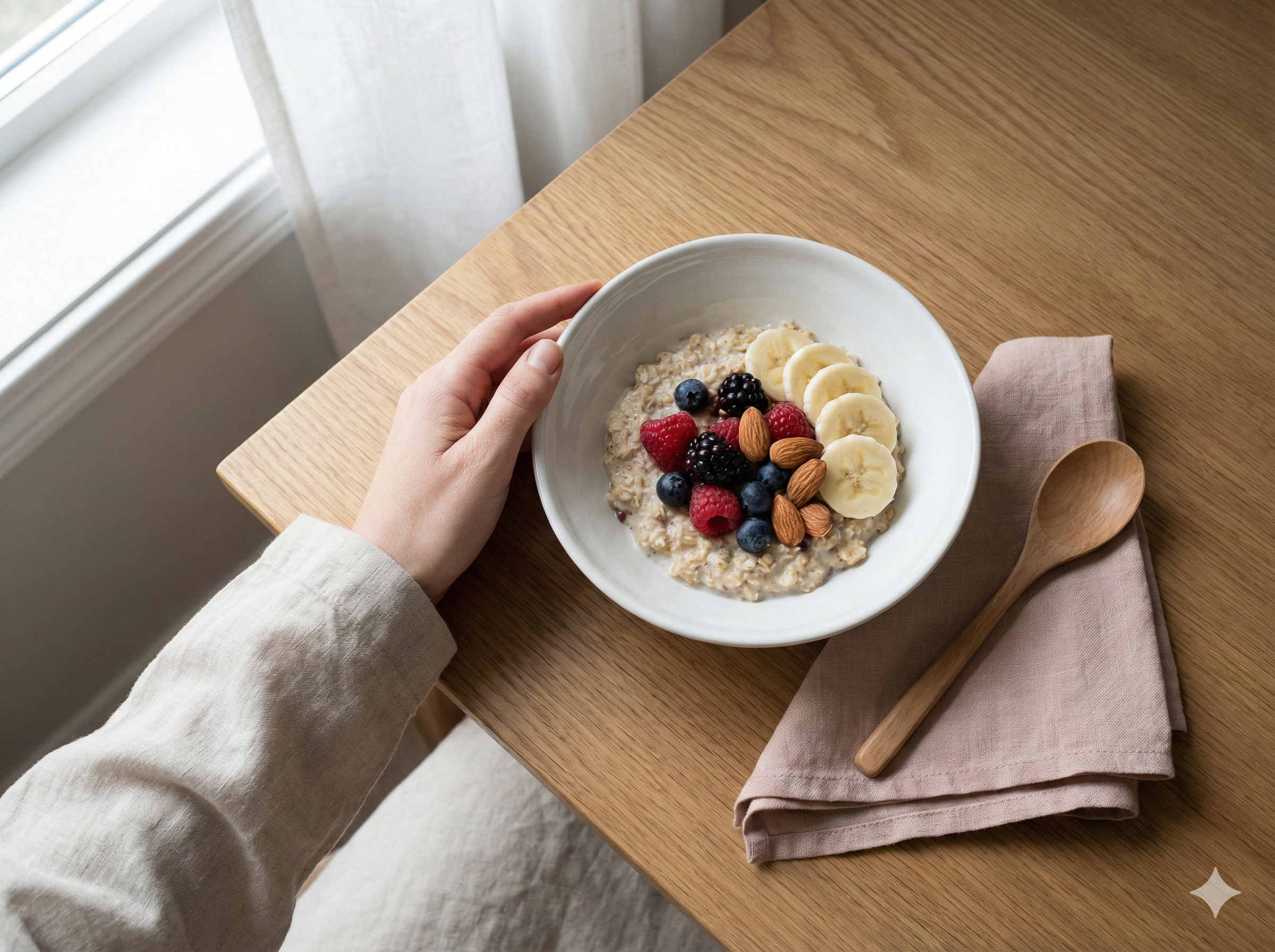 오트밀(귀리)은 복합 탄수화물의 보고로, 아침 혈당 안정화에 가장 이상적인 식재료입니다.